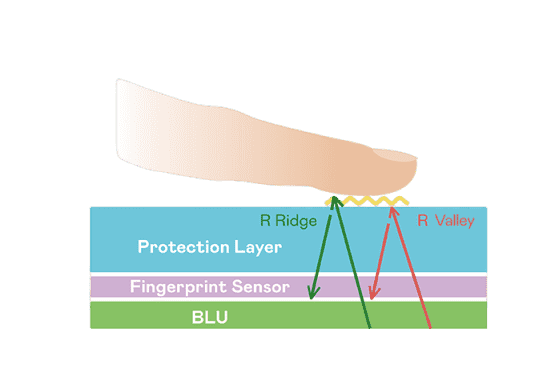 TFT 指纹扫描感测技术利用薄膜电晶体 (TFT) 当作光感测元件,,,藉由非晶硅 (a-Si) 与低温多晶硅(LTPS)既有光电转换特性对不同波段光源进行吸收,,使感测 IC 读取阵列感测元件的光漏电差异,,,,转换成数位灰阶影像。。。。